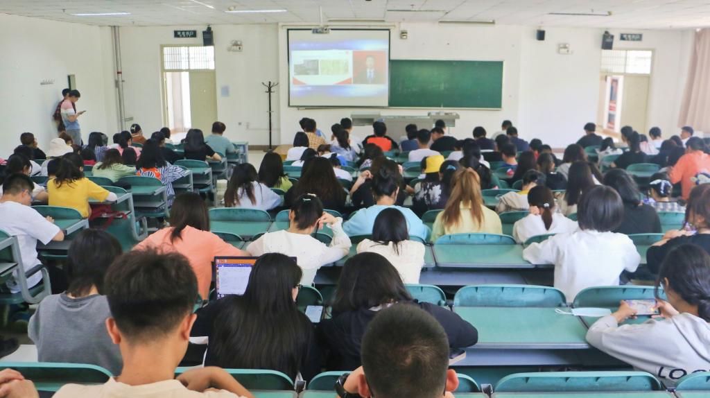 于文荟楼组织学生参加“同上‘四史’思政大课”活动,300余名学生分不同教室集中学习新中国史。