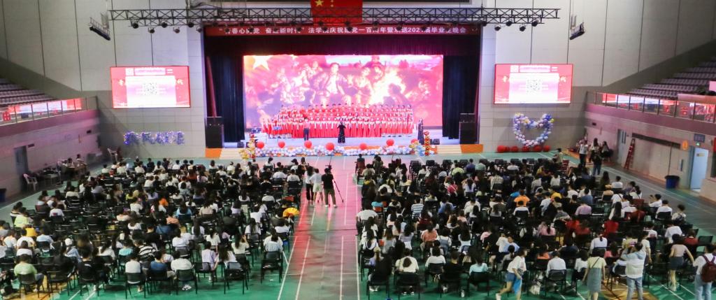 晚会在学院师生带来的大合唱《追寻》中拉开了序幕,漫画18 师生以歌化情,以情传意,表达了对党和祖国的热爱;2020级社会学班带来的古典舞《笑纳》,“暮夜抚琵琶,秋水望流霞”,唯美的画面让人魂牵梦萦;街舞社带来的街舞点燃了全场,他们用音乐燃烧青春热情,用舞姿闪耀奋斗青春;由2020级法学一班带来的小品《非常面试》及2019级社会学班和2020级行政管理班共同带来的情景剧《我们的故事》别具匠心,活泼诙谐,倍受师生喜爱与好评;橘南乐队带来的《光阴的故事》,触动了我们的内心,勾起了对往事的回忆。青春易逝,韶华易老,流水带走了光阴的故事,也带走了多愁善感的青春……研究生与本科生的歌曲串烧勾起了毕业生离别的思绪,毕业生虽即将告别母校,走上不同的人生道路,但希望每个人都能铭记母校的恩泽,扬帆远航,走向更广阔的未来;2019级行政管理班与2020级法学二班共同带来的古风舞蹈《满城尽带黄金甲》,少年的蓬勃朝气与浓墨重彩的中国风完美结合,全场气氛再次燃爆;漫画18 教师带来的朗诵《相约在第一百个春天》深情流露,承载着对党、对祖国美好的祝愿;2019级法学一班与漫画18 学生会文艺部带来的舞蹈串烧《big hero》再次向在场师生展现了学院学子蓬勃朝气与青春激情;最后,由漫画18 合唱队为在场师生带来合唱《仰望星空》,动听的音乐中倾注了对毕业生浓浓的情谊,伴随着宛转悠扬的歌声,晚会落下了帷幕。整场晚会节目形式多样、美轮美奂,为在场观众献上了一场精彩绝伦的视听盛宴。