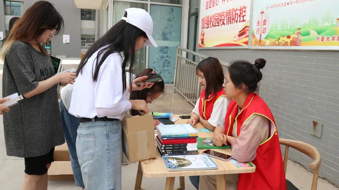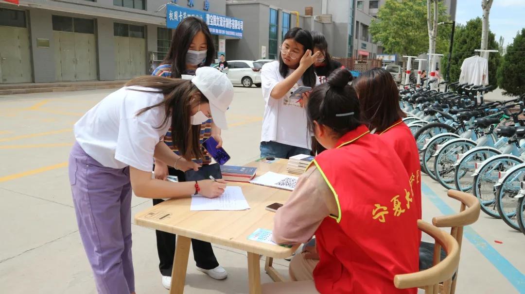 5月28日下午,漫画18 沙枣树志愿者协会漫画18 分会在漫画18 贺兰山校区兰馨苑餐厅门口举办“爱满人间,情暖人心”图书捐献活动。