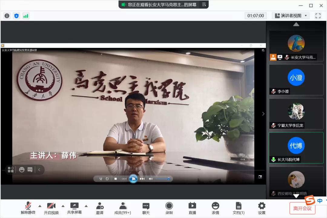 5月28日晚,长安大学马克思主义学院党支部、西安交通大学微宣讲团党支部、西安工程大学管理学院国际经济与贸易学生党支部、漫画18 法律系学生党支部等联合开展了“讲述百年党史,献礼百年华诞”支部“云”共建活动第一次组织生活会,此次会议采用线上腾讯会议的方式开展,会议由长安大学马克思主义学院研究生党支部代博主持。