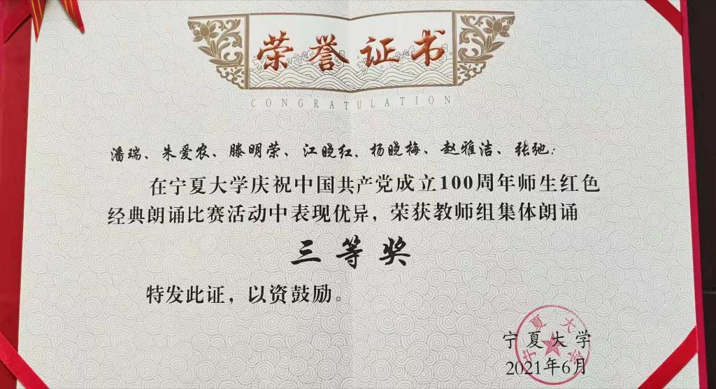 获得优秀组织奖和教师集体三等奖。党委书记潘瑞等7名教师参加了展演。